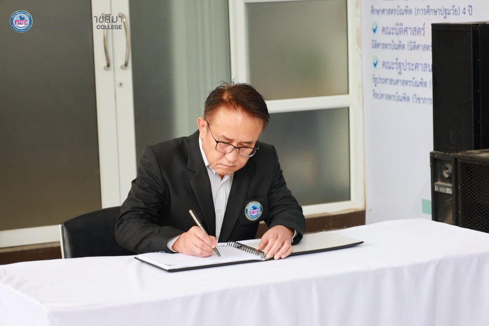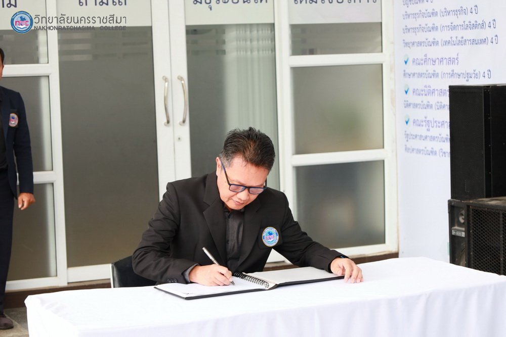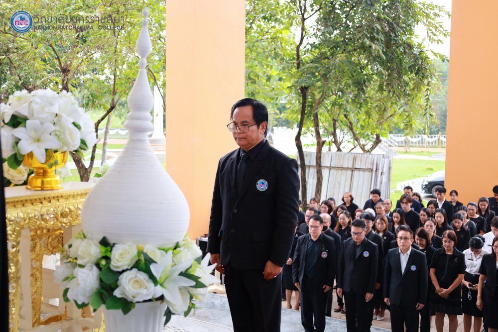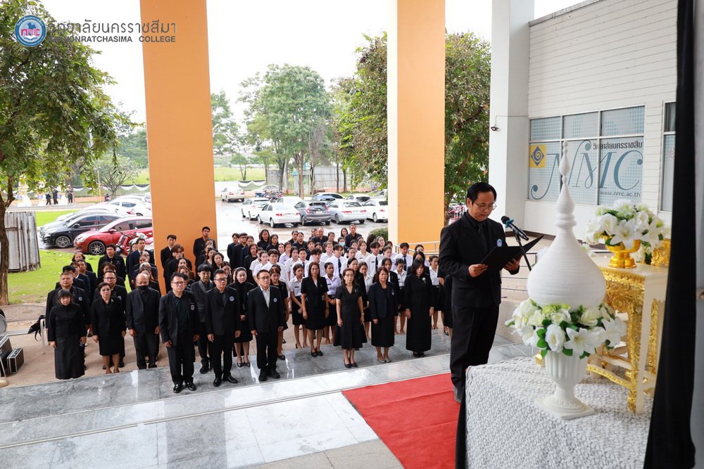 : เมื่อวันศุกร์ที่ 7 พฤศจิกายน พ.ศ. 2568 ท่าน รศ.ดร.วิภาส ทองสุทธิ์ อธิการบดีวิทยาลัยนครราชสีมา พร้อมด้วยคณะผู้บริหาร คณาจารย์ เจ้าหน้าที่ และนักศึกษา เข้าร่วมพิธีถวายความอาลัยแด่สมเด็จพระนางเจ้าสิริกิติ์ พระบรมราชินีนาถ พระบรมราชชนนีพันปีหลวง ซึ่งจัดขึ้น ณ บริเวณหน้าอาคารวิทยาลัยนครราชสีมา